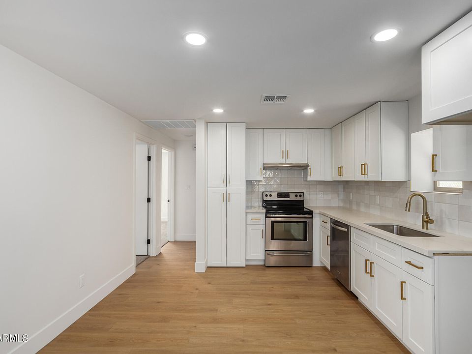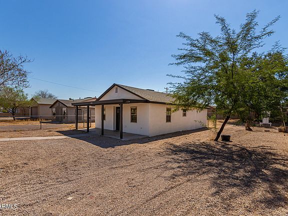 Be excited to see this fully permitted remodeled home in Central City South of Phoenix! Start your day by savoring your favorite cup of coffee on the welcoming front porch. The immaculately designed interior boasts an open layout adorned with tall ceilings, freshly painted walls, recessed & chic light fixtures, and wood-style vinyl flooring. The spotless kitchen is a homemaker's delight, showcasing SS appliances, quartz counters, tile backsplash, and white shaker cabinetry. This gem provides two cozy bedrooms with plush carpeting and a pristine bathroom for convenience. Relish memorable get-togethers in the large backyard with a mature shade tree! Great location! Minutes away from shopping spots, schools, hospitals, and convenient access to nearby freeways. Move-in ready!