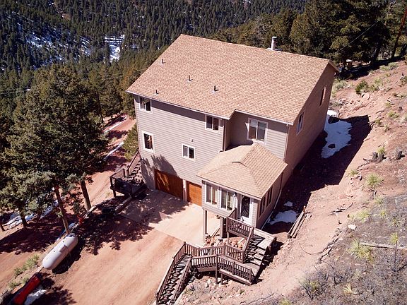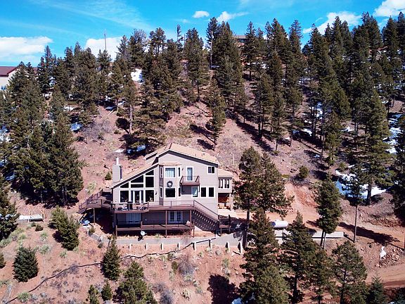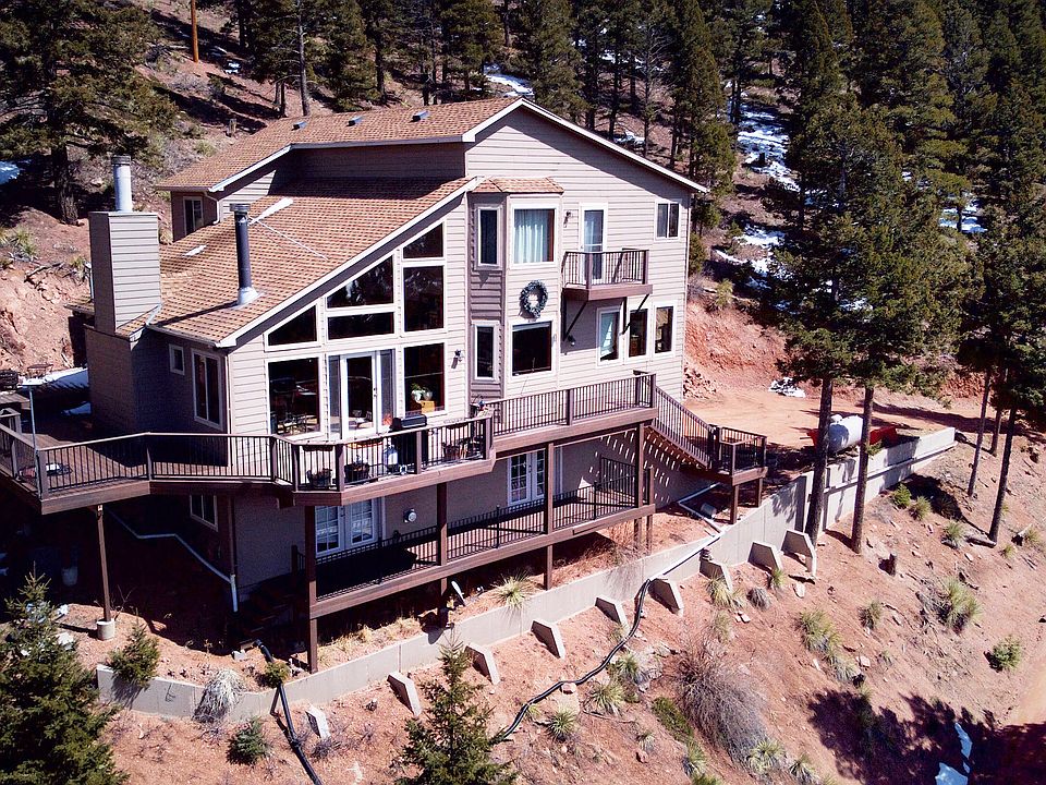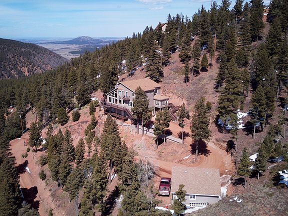 This fantastic 4BR/4BA home with its magnificent Pikes Peak and forest views will take your breath away as it sits on nearly 3 acres atop the highly sought-after Woodmoor Mountain. Peace & quiet await its next owner and is something that one only dreams about. Towering windows in the great room showcase the incredible mountain views. The great room and updated kitchen adjoin for good family times and entertaining with friends. Sweet south-facing sunroom is perfect to enjoy reading, meditating or arts/crafts. All carpet is brand new. This home is wrapped with a newer composite deck designed for enjoying fun times or just to relax & take in the mountain air. Spacious master suite frames the views and adjoins the master bath. This true mountain retreat has it all with both attached & detached garages. Perfect retreat in this exclusive gated community for either year-round living or a weekend or summer getaway that is close to everything with Palmer Lake & Monument only minutes away.