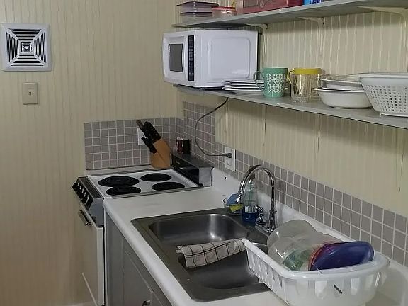 Small 2-story house. Nice shaded private corner lot, private parking, in town of Elberta. Bedroom upstairs, kitchen, dining, bath downstairs. Small utility room with washer/dryer on site. Additional storage room on site.