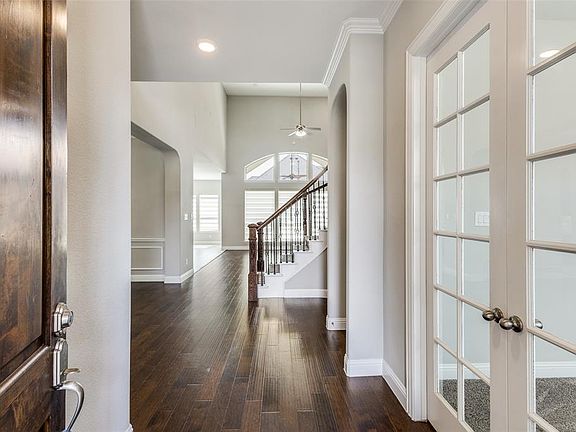 Located in the prestigious gated Lexington community, this elegant North Facing Mediterrarean style 5-bedroom, 4.5-bath home offers the perfect blend of comfort, and functionality. The open-concept floor plan features soaring ceilings, abundant natural light, and rich hardwood floors throughout the main living areas. The gourmet kitchen boasts quartz countertops, stainless steel appliances, a large island, and a walk-in pantry, opening to a spacious family room ideal for entertaining. The primary suite is privately located on the first floor and offers a spa-inspired bath with dual vanities, soaking tub, separate shower, and generous walk-in closet. Office is downstairs in the front part of the home. A second bedroom with a full bath downstairs is perfect for guests or extended family. Upstairs features three additional bedrooms, two full baths, and a large game and media room for family fun.Enjoy a covered patio overlooking the private backyard and an oversized 3-car garage providing ample parking and storage. Zoned for top-rated Frisco ISD schools. Community amenities include a clubhouse, fitness center, resort-style pool, and walking trails. Conveniently located near shopping, dining, and major highwaysthis home delivers luxury living in one of Friscos most desirable gated neighborhoods. *Previous Tenant Removed Refrigerator. One can be added for a $50 extra a month. Space will fit up to 42 inch wide refrigerator if you have your own.