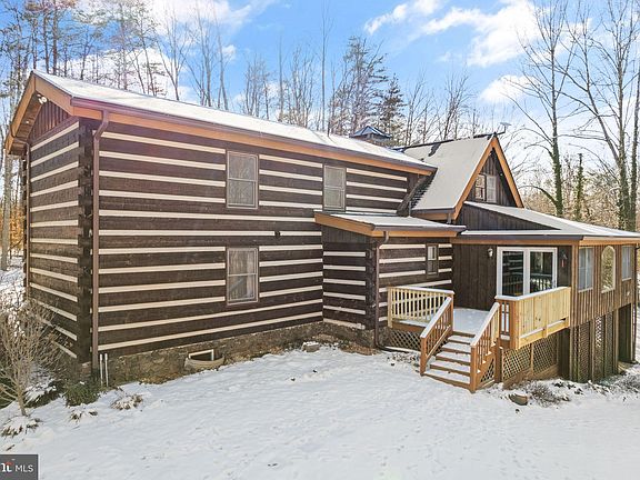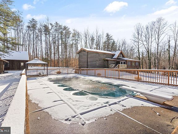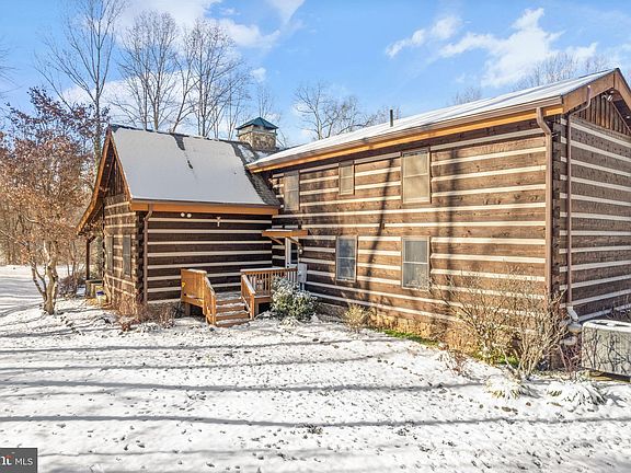 Welcome to the perfect homestead!! Situated on over 14 private acres, you will be in awe of the peacefulness and tranquility of this truly one-of-a-kind property. This unique 5 bed, 3 bath log cabin, made from freshly chinked, stained and sealed, hand-hewn hemlock. The home was fully updated in 2015 and has been updated even more over the years. Amazing in-ground pool. Multiple detached structures scatter the property including a massive 60x40 commercial-grade workshop with electrical and Heat/AC, an oversized 2 car detached garage, a pool/utility shed and chicken coop. Inside boasts an open kitchen with Virginia soapstone countertops and stainless steel appliances, gleaming hardwood floors, generous sized rooms, impressive two-story family room with floor-to-ceiling stone fireplace with new insert, large sunroom and tons of space to spread out. Large walk-out level basement, with its own entrance, has rough-in plumbing for a second kitchen, additional bedroom and additional space for possible rec room/home gym. Come see this home today you won't find another like it!