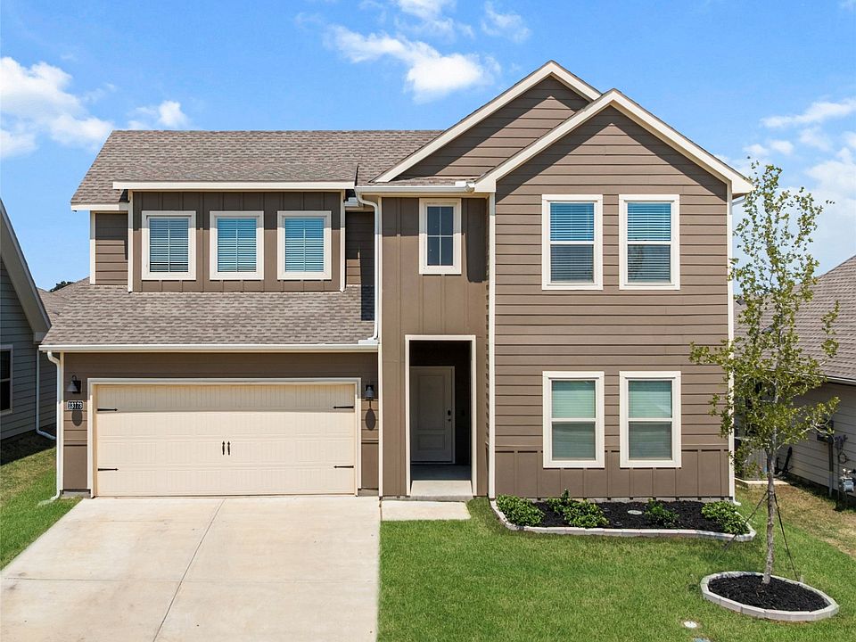Welcome to this spacious and stylish 2-story home located in the highly acclaimed Aubrey ISD. Designed with modern living in mind, this open-concept floor plan offers both functionality and comfort, perfect for families of all sizes.The heart of the home is the kitchen, seamlessly flowing into the living area—ideal for entertaining or everyday living. Downstairs, you’ll find the primary suite tucked away for privacy, featuring a generously sized walk-in closet. Upstairs, enjoy a versatile flex space that can be used as a game room, office, or second living area—alongside two additional bedrooms that provide plenty of room for family, guests, or hobbies. Step outside to your private backyard, perfect for relaxing evenings, weekend BBQs, or playtime with kids and pets.