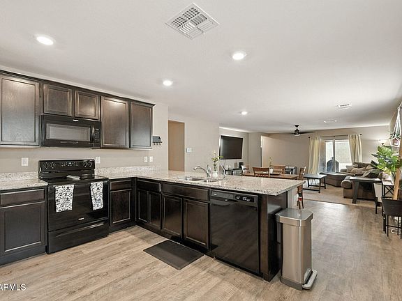 This 3-bedroom + den, 2-bath home offers 1,795 sq ft of single-level living in the desirable Magma Ranch community. Built in 2019, it features an open-concept layout with a split floorplan for added privacy. The kitchen boasts granite counters and opens to the great room, creating the perfect space for gatherings. The private primary suite includes a spacious bath and walk-in closet, while secondary bedrooms are thoughtfully set apart. Energy-efficient details include low-E windows and a fresh air mechanical system. Outside, enjoy a covered patio and low-maintenance yard. Well-maintained and move-in ready, this home combines modern comfort, style, and a great location!