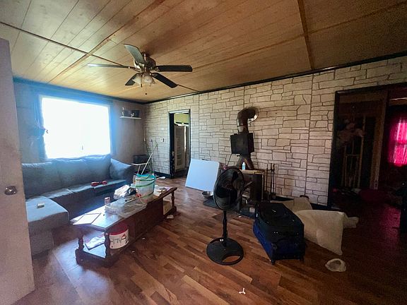 Take a look at this two bedroom home sitting on over 10 acres of incredible land with a huge outbuilding and private pond! Inside you'll discover fantastic opportunities to bring your creative vision to life starting in the spacious living room and large kitchen. Both bedrooms offer great space and share the full bath. Explore the vast wooded acreage, peaceful pond, or check out the outbuilding to find plenty of storage for all your tools and toys! Sold as is. Make this unique find yours today!