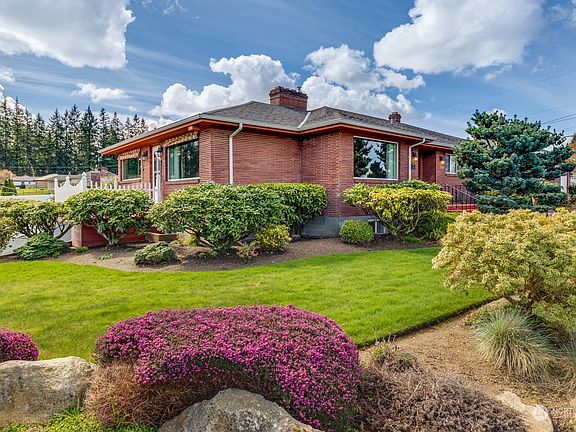Location! Location! Location! Classic Claremont brick rambler that has been updated, sited on a double lot w/ huge fenced rear yard, south facing for all day sun. Economical heat pump, wood burning fireplace on each level, kitchen features Maple Shaker cabinets, SS appliances, granite counters & tile floor. Primary bedroom with walk in closet and 5 piece bath w/ jetted tub. Family room on main level with wet bar. Lower level has a second utility set up, kitchenette, recreation room, 3rd bedroom and outside entrance. Plumbing & wiring updated, newer roof and vinyl windows. Small view porch off kitchen. Partial mountain views including Mt Baker. Detached 4 car garage and a tandem 2 car garage in basement. Walk to the YMCA or Starbucks.