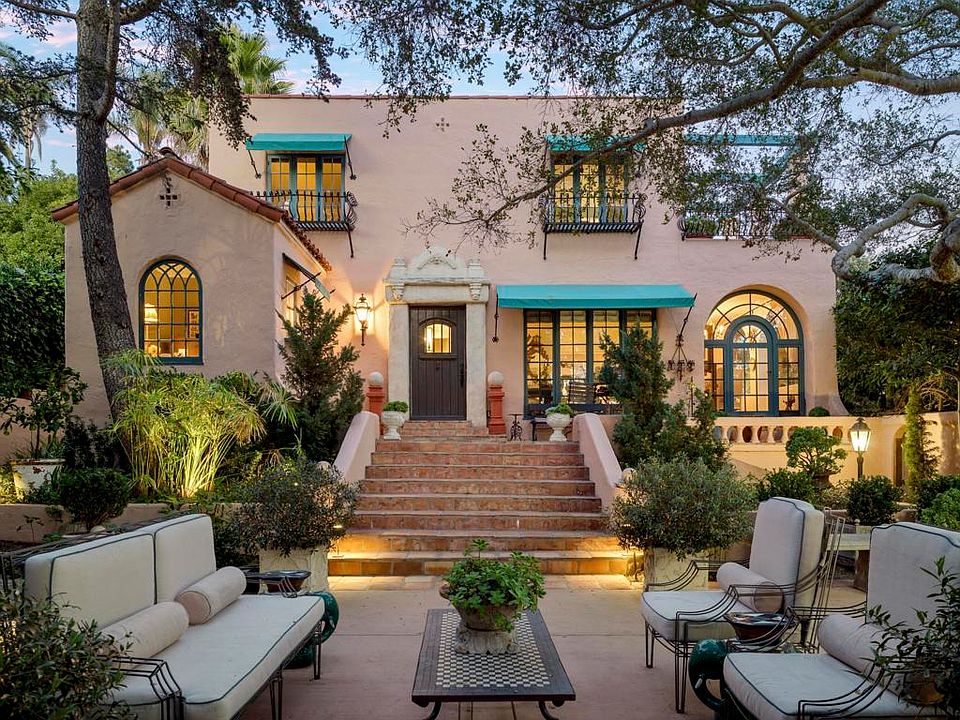 Experience the timeless elegance of 1318 Alta Vista, a distinctive sanctuary property situated in Santa Barbara's historic and highly desirable Lower Riviera. This exceptional estate encompasses two private residences on an expansive lot. Once inside the hand-forged iron entry gate, one experiences the magical quality of the courtyard's mature landscape, mural, and the sound of its original Spanish tile fountain. Bespoke ironwork pays homage to the artisanal craftsmanship of the home and garden. The main residence, spanning 2,588 sq.ft., boasts three ensuite bedrooms, including a newly remodeled primary bath with a clawfoot tub, custom lighting, and vintage style floor tiles. A sunlit living room welcomes you inside with a cozy fireplace, floor to ceiling casement windows that open to the courtyard, and a private office space with a view. Alongside, is a stunning sunroom/dining room with Saltillo tiled flooring, grand picture windows, and a Palladian style door/window that opens to the front porch. The vibrant, newly designed chef's kitchen features top-of-the-line appliances, custom cabinetry, and beautiful herringbone tile flooring. There is a seamless blending of indoor/outdoor living with direct access to a private back patio off the adjacent family room; ideal for alfresco entertaining. Tranquil ocean views can be enjoyed from the courtyard, the upstairs bedrooms, as well as their adjoining balcony with its custom pergola shade covers. The secondary residence welcomes you with soaring ceilings, a charming fireplace, two bedrooms with ensuite baths, and a full kitchen. Enjoy gorgeous views of the ocean from the front porch balcony, the living room, and upstairs bedroom. Additionally, a versatile atelier on the property offers flexible creative space, while a 2 car garage and a private entry parking space complete the home- a treasure in one of Santa Barbara's most coveted neighborhoods.