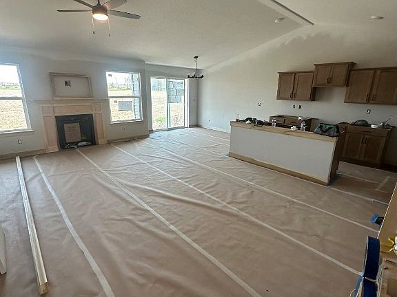 Welcome to the Copeland floor plan—a stunning open-concept home with vaulted ceilings and luxury vinyl flooring in the kitchen and great room. The kitchen is designed for both style and function, featuring quartz countertops and a single-level breakfast bar, perfect for meal prep or casual dining. The dining area leads to a deck with stairs to the backyard, making outdoor entertaining a breeze. The gas fireplace serves as the focal point of the great room, creating a cozy and inviting atmosphere. Convenient first-floor laundry is located in the hallway near the bedrooms for easy access. The lower level offers daylight windows, allowing natural light to flood the space, with the potential for a future rec room and additional bedroom. Plus, a bathroom is already stubbed in for future finishing. Don't miss your chance to own this beautiful new home!
