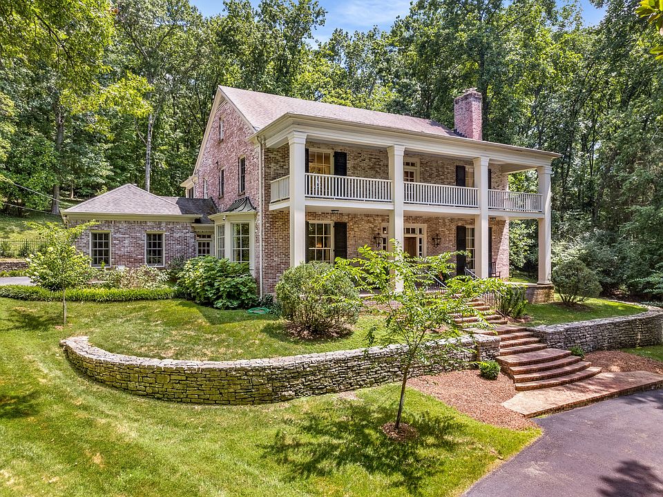 INCREDIBLE OPPORTUNITY IN BELLE MEADE. Traditional brick home situated on 2.37 acres in the Estate section of prestigious Chickering Road. Set back from the road on a wooded and maturely landscaped lot, this gorgeous property offers privacy while being conveniently located to area shopping, restaurants, schools and the beautiful Warner Parks. Extensively renovated through the years, this home exudes timeless elegance, quality and charm with a fabulous layout and flow for everyday living and entertaining. Impressive entrance with circular driveway, stacked stone wall and wide brick front porch. Gracious entry foyer, spacious light-filled Dining Room with large bay window and formal Living Room with fireplace. Kitchen with Mont Blanc marble countertops, Subzero refrigerator, Wolf Oven & Wolf range opens to large Family Room with enormous fireplace, beautiful built-ins and French doors leading to an attractive covered porch and terrace. Handsome Den with vaulted ceiling, wooden beams and built-ins. Outstanding architectural features including 10 Ft. ceilings, crown molding, hardwoods, arched doorways, floor to ceiling windows and generously-sized rooms. 2 Fireplaces, Butlers’ Pantry, Private Office, and Bonus Room. Relax and enjoy nature from one of the 4 inviting covered porches. Truly a special property on one of the loveliest streets in Nashville.