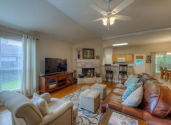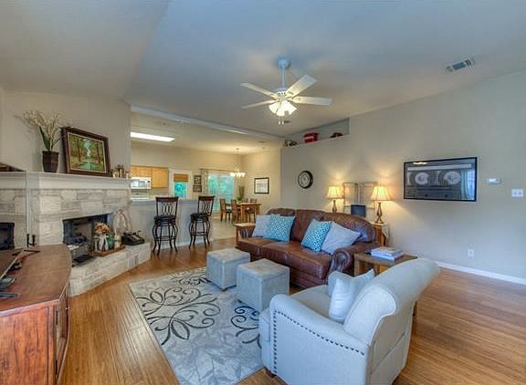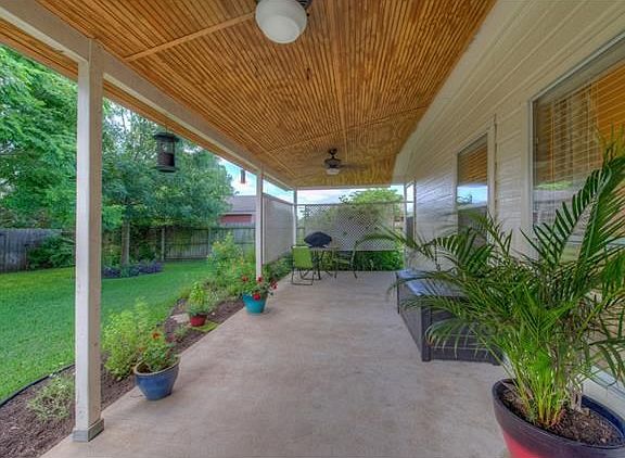 This charming home is move in & relax ready. Enjoy hours on the covered private porch while taking in manicured backyard. Storage shed built in 2013 & can provide many uses from playhouse to garden shed! This home has easy care hand scraped strand woven bamboo which was installed in 2013. Flooring replaced to tile in utility, hall & baths. Kitchen updates the past couple of years such as microwave, kitchen faucet & sink, dishwasher & gas range. Office could be 4th bedroom. NEW carrier air unit.