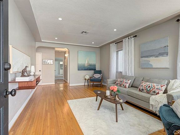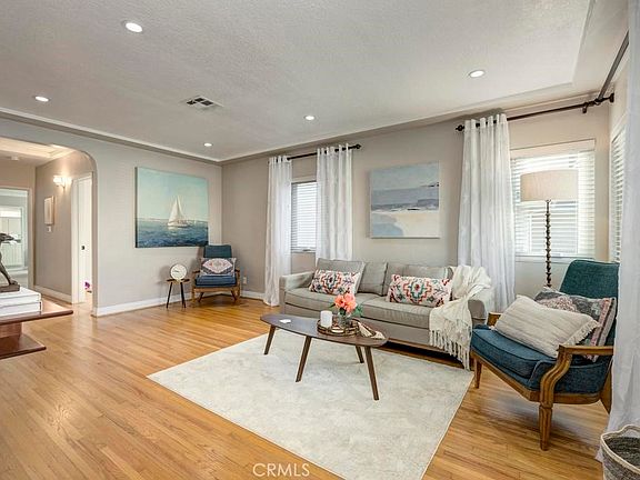 The ONLY home for sale in all of Torrance with a lot over 7,000 SF and under $1,500,000!! Also, the detached garage is 540 SF and would make a perfect ADU. *** If you combine a new ADU with the rear studio, the total living SF will be over 2,000 SF!! *** The private driveway inside the gate will fit a 45 foot RV! *** This charming, remodeled 3 bed 2 bath home has central AC! Move-in ready with a great combination of style and many upgrades. From the large front porch, you enter a fresh and airy living room with lots of natural light and gleaming original hardwood floors that flow throughout the main living space and two bedrooms. Custom archways take you to 3 spacious and bright bedrooms and two updated bathrooms. The primary bedroom features a custom wood paneled wall and a full bath that has a spa tub lined with new shower tile and granite countertops over lots of cabinet space. *** The kitchen has quartz counters, abundant cabinetry, soft-close drawers, updated appliances and contemporary finishes. Off the kitchen you will find a dining area with ample built-in storage and counter space. *** The third bedroom opens up to a sunlined entry room that leads to a charming backyard patio, extending your living space. *** The HUGE backyard is adorned with fruit trees (massive Orange tree!), covered patio and private driveway – the perfect setting for outdoor gatherings, relaxation, and play. This is a backyard that is just waiting for you to put your special touch for a wonderful oasis! In addition to the living space above, there is a 230 SF flex space attached to the garage that provides additional living, storage or office space. With private backyard access, this space is versatile and adaptable to many different needs.