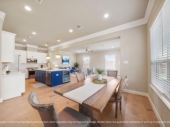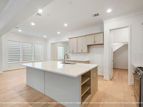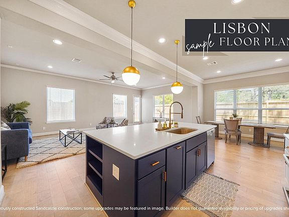 Meet the Lisbon — a home that lives as beautifully as it looks. Sandcastle Homes designed it for the way Houstonians really live: open, bright, and connected. The first floor features wide-plank wood floors and a seamless flow from kitchen to dining to living, leading to a fenced backyard perfect for relaxing or entertaining. The kitchen is generous in every way, with a large island, quartz countertops, custom cabinets, and LG stainless appliances. Upstairs, a sunny game room and two secondary bedrooms with walk-in closets surround a roomy laundry with folding counter. The vaulted primary suite is peaceful and airy, with a huge closet and a well-planned bath featuring an oversized shower with bench, separate tub, and dual vanities. Every finish was hand-selected by ASID award-winning designers from LYRD Interiors. With a private driveway, two-car garage, and the craftsmanship Sandcastle has perfected over 30 years, this one simply feels like home.