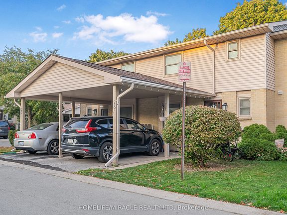 This lovely unit with a carport in well-maintained complex is perfect for first time buyers or investment. Close to schools, bus, shopping, and easy access to Fanshawe College, UWO and Masonville Mall. Nice features include 3 bedrooms, 1 1/2 baths, central air, hardwood floors in Living & dining, and 3 bedrooms, vinyl replacement windows, and a large Master bedroom with ensuite privilege. Main floor highlights a bright, open-concept living and dining layout. Sliding door to patio. House is freshly painted (2025). Recently upgraded with pod lights (2025). Living area upgraded(2025). Basement comes with a recreation room for kids' play area or family entertaining. It also includes a laundry room and a utility room with tons of storage space.