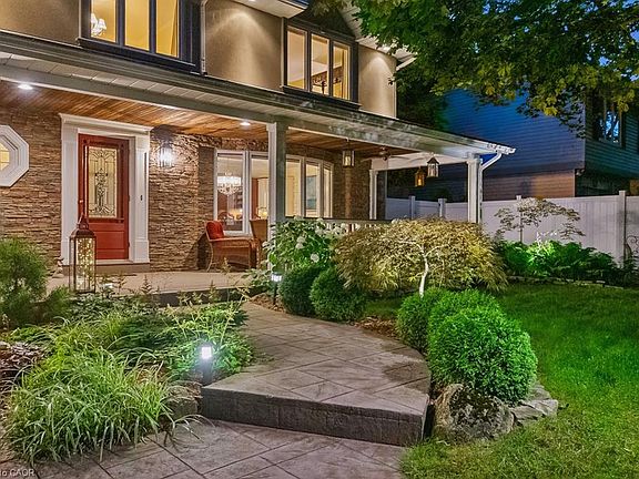 Nestled on a quiet crescent in the highly sought-after Falgarwood neighbourhood, this rare property sits on a stunning 75x175 ft ravine lot w/ no rear neighbours, offering unmatched privacy & breathtaking views year-round. From the moment you arrive, the home's curb appeal impresses w/ its aggregate driveway, stone walkway, & inviting covered TimberTech front porch w/ overhead fan & lighting. Inside, you'll find large primary living areas featuring crown moulding throughout, 2 cozy gas fireplaces, & hardwood floors on the main level, creating a warm & elegant atmosphere. The chefs kitchen, fully expanded in 2015, features granite countertops, a custom window seat, bar, & pantry, & opens to a spacious back deck w/ a skylight overlooking the peaceful ravine, perfect for morning coffee or summer entertaining. This home has been meticulously updated over the years, including spa-like bathrooms with soaker tubs and glass showers, a fully finished basement w/ custom built-ins (2017), & a spectacular great room addition w/ a brand-new roof, soffits, & eaves (2024). Upstairs showcases engineered hardwood flooring, a skylight above the landing, & a private balcony in the primary suite, while 3 additional bedrooms feature soft, neutral carpeting. The backyard is a true sanctuary. Backing onto a lush, tree-filled ravine, it offers a level of privacy rarely found in Falgarwood. Professionally landscaped gardens w/ accent lighting, irrigation system & a soothing waterfall feature create a magical atmosphere, perfect for unwinding after a long day or hosting summer gatherings. W/ new fencing on both sides, this outdoor oasis is completely enclosed, offering peace of mind & a sense of seclusion. Located in the top-rated Iroquois Ridge School District, & minutes from parks, trails & convenient amenities, this home offers a rare blend of modern comfort & natural beauty. W/ its extensive renovations & incredible ravine setting, you'll fall in love with the moment you step inside.