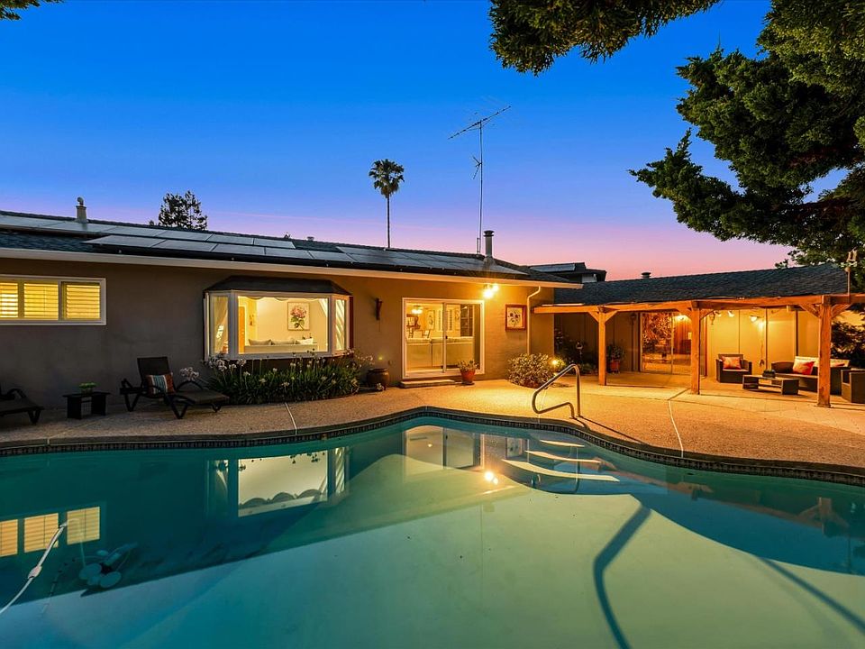Gorgeous retreat style home located in a great neighborhood. Situated at the end of a cul-de-sac on a large pie shaped lot of a quarter acre, this wonderful home offers several desirable features. The main home features 3 bedrooms, 2 bathrooms and nearly 1,900 SqFt of living space. Set in an open layout lies the living room with a wood burning fireplace, dining area and the updated kitchen that features a large center island, granite countertops, gas stove and several cabinets that offer plenty of room for storage. Nearby lies the family room with a bay window that overlooks the sparkling pool. In addition to the main home, there is a recreation room that features a bar, half bath, wood burning fireplace and a vaulted beamed ceiling. Other features of this special home include solar, crown molding, dual pane windows, a hot tub, fruit trees, multiple storage sheds, an attached 2 car garage and a large side yard, perfect for an RV or boat.