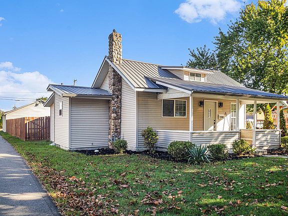 An open layout and recent updates throughout. The main level includes a living area that connects to a kitchen with custom cabinets, granite counters, and stainless appliances. Laundry hook-up is on the main floor for added convenience, and the basement provides clean storage space. Recent improvements include a metal roof, new flooring, and windows. The detached garage and large yard add extra function and room to work or relax. Located near parks, shopping, and local restaurants, this home offers an easy place to settle in and stay connected to everything Elkhart has to offer. Fireplace in living room is an electronic insert and is for aesthetic purposes.