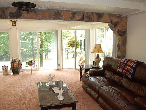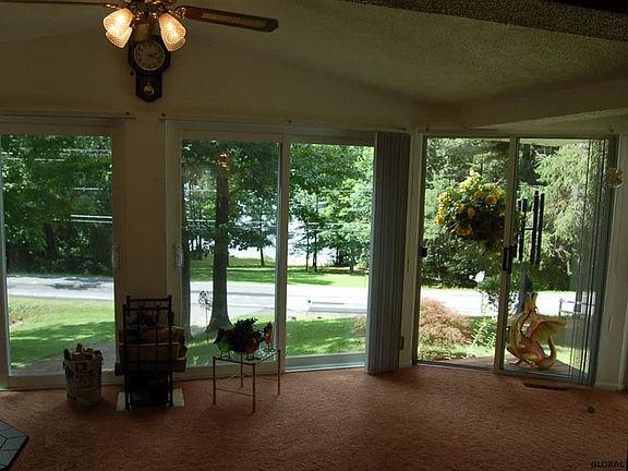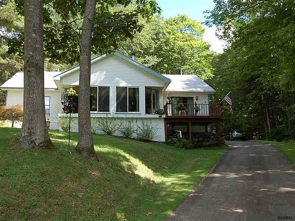 Enjoy the Sunset views & Lake living on wonderful Sacandaga Lk! Ranch home with easy approach to 100' sandy beach front (no stairs), great for big reunions or just a few friends to enjoy a Lakeside day. Beautiful house, very spacious Family Rm. w/ all glass facing west to the lake, Master w/ sliders to deck, Both w/ great views of the Lake, newer Kit appliances, very easy home to maintain & live in, 3rd bed is being used as Den/craft rm, "move in ready", large 3 car gar w/ workshop, beautiful wooded land, barn in back could be workshop, guest cottage, etc...