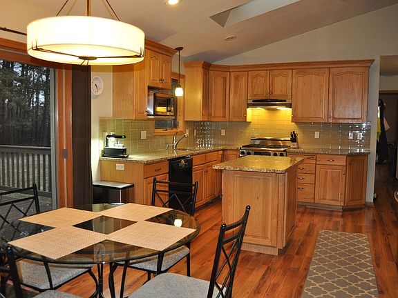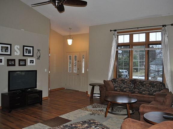 Impressive home on a private wooded lot. Living room features vaulted ceiling, large windows & corner fireplace, granite countertops & stainless steel appliances in the kitchen, spacious master suite w/double vanity & huge walk-in closet, beautifully finished lower level with family room, fireplace, office, bar & entertaining area & 4th bedroom. Deck & patio overlooks the private park-like yard.
