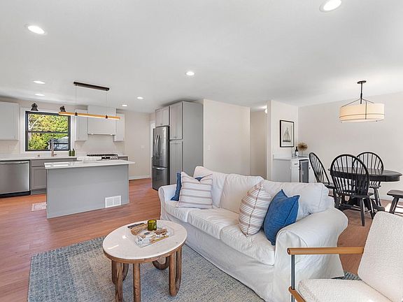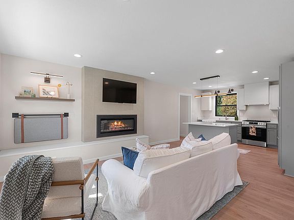 Step inside this stunning, fully remodeled contemporary single story and prepare to be amazed! Taken down to the studs, this home offers a sleek, modern design with an inviting open-concept layout. The living area features an elegant electric fireplace with custom tile, while the dining space boasts a dry bar with quartz countertops and designer lighting. The chef's kitchen showcases new stainless steel appliances, quartz countertops, and a gorgeous island. The primary suite offers a walk-in closet and spa-like bath, while two additional bedrooms and a stylish bathroom complete the other wing. Enjoy a finished lower level perfect for entertaining, plus an acre lot in a quiet neighborhood near schools, shopping, and easy highway access.