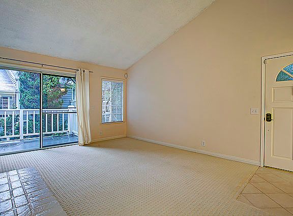 Truly immaculate “ Ponderosa Springs” condo located in a beautiful setting surrounded by running streams, waterfalls and lush landscaping. Within blocks to shops, restaurants, parks and more. Quiet interior upper end unit with lovely views overlooking grounds. Living room features vaulted ceilings, fireplace and sliding glass doors opening to large sunny balcony. Newer carpet and tile throughout. Open kitchen has breakfast bar and new stove. Spacious master bedroom has walk-in closet. Laundry located inside of home and is complete with washer and dryer included. Two secured covered parking spaces. Gated community offers four pools and two spas. Pets welcomed. Short drive to beaches and only two miles to freeway access.