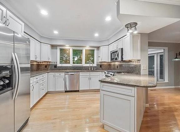 OVER 4200 sq. ft. of UPDATES GALORE! READY TO MOVE IN! Newer James Hardie siding, roof, concrete driveway, new dual HVACs, new 16 x 32 maintenance free deck, lights, lower level full bath, fresh paint, list goes on & on! Pristine wood floors in foyer, dining room, breakfast and updated kitchen w/ white custom cabinets, granite counter tops, SS appliances, and gas range w/ new microwave. Upstairs you will find large master suite, 3 very good size rooms, large hall bath all updated. 5th bedroom was converted into a walk in closet. Walk out lower level features a huge divided rec room, w/ the second fire place, wet bar, full bath, pool table room, and utility room with 3 work benches. So much storage space through out the house as well! Large deck and beautiful private back yard. Great neighborhood, walk to Phantom Park, Barretts Elementary. You will have to see to appreciate the location, house & amenities!!