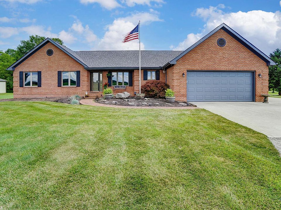 A true gem! This country oasis has been impeccably cared for and maintained, and is a wonderful blend of functionality & convenience. Enjoy first floor living w/ laundry, kitchen, dining room, three bedrooms, two & a half baths and a family room overlooking the deck, combined with a full, finished basement great for entertaining (w/ tall ceilings!). A four car garage perfect for all the hobbies, and a tree-lined yard w/ creek make this home close to town an idyllic setting. Kick back around the fire pit out back facing a secluded backyard with family & friends. Tons of updates! Solid oak cabinets, trim, hardwood flooring, doors. Home has been freshly painted, 2022 Furnace, 2024 (June) Roof, Natural Gas, New Sump Pump/Backup, etc! A rare find, and a must see!!
