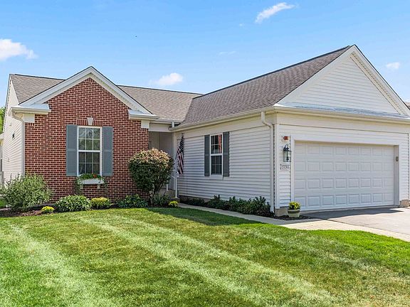 Well maintained ranch home located in the gated 55 and older in Highly Desirable Del Webb Sun City Community, which offers pools, golf course, tennis courts, steakhouse house restaurant, and much More! This two bedroom with a first floor office / study, includes two full bathrooms (1/2 bath roughed in basement), and a full unfished basement! Master bedroom offers a bay window - roomy bath - and a walk in closet. Custom vertical and pleated blinds thru-out. Open floor viewing kitchen / LR / DR / and Sun Room all in one glance. New Roof and gutters installed in 2019, new water heater in 2023, new sump pump in 2024, new front aluminum hand rail in 2024. Great location with sun room and living room looking down an open green area between rear homes. Upgraded elevation with front brick on exterior of home. Enter home to an open staircase to basement that currently offers a stair lift (seller will remove if buyer wants). Bright and airy floor plan (9 foot ceilings thru-out) offers tons of natural light. Kitchen offers raised panel oak cabinets, white appliances, and Corian countertops. 11ft x 10ft Sunroom really adds openness to the first floor with its many windows and access to the rear yard patio. First floor utility room has front loan washer and dryer and a utility sink, plus a service door to the garage. Huge unfinished basement has outside walls insulated - 1/2 bath roughed in - high efficiency gas furnace / water heater. As built, the home is equip with a sprinkler system. Driveway was widened on both sides with brick pavers for added exterior parking. Great Home - make your appointment to see it soon!