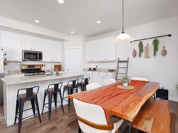 Bright, sophisticated, and move-in ready, this Herriman townhome blends contemporary style with effortless living. The spacious dining area opens to a large kitchen featuring quartz countertops, stainless steel appliances, ample cabinetry, and a generous island for casual dining and extra prep space. Retreat to the primary suite with a generous walk-in closet and an en-suite bath. Additional bedrooms provide flexible space for family, guests, or a home office. The finished basement expands your living options-a perfect setting for a movie night, home gym, office, or a fourth bedroom. Enjoy outdoor living with a private backyard, a covered deck, and a patio ideal for BBQ's and outdoor gatherings. Recent updates include a new furnace and fresh carpeting. The refrigerator is included; washer/dryer and a weight set are negotiable for the right offer. A one-year home warranty is included, plus complimentary re-keying at move-in for your peace of mind. Located in a desirable Herriman community with easy access to shops, parks, trails, and commuting routes. Schedule your tour today and imagine the lifestyle that awaits.