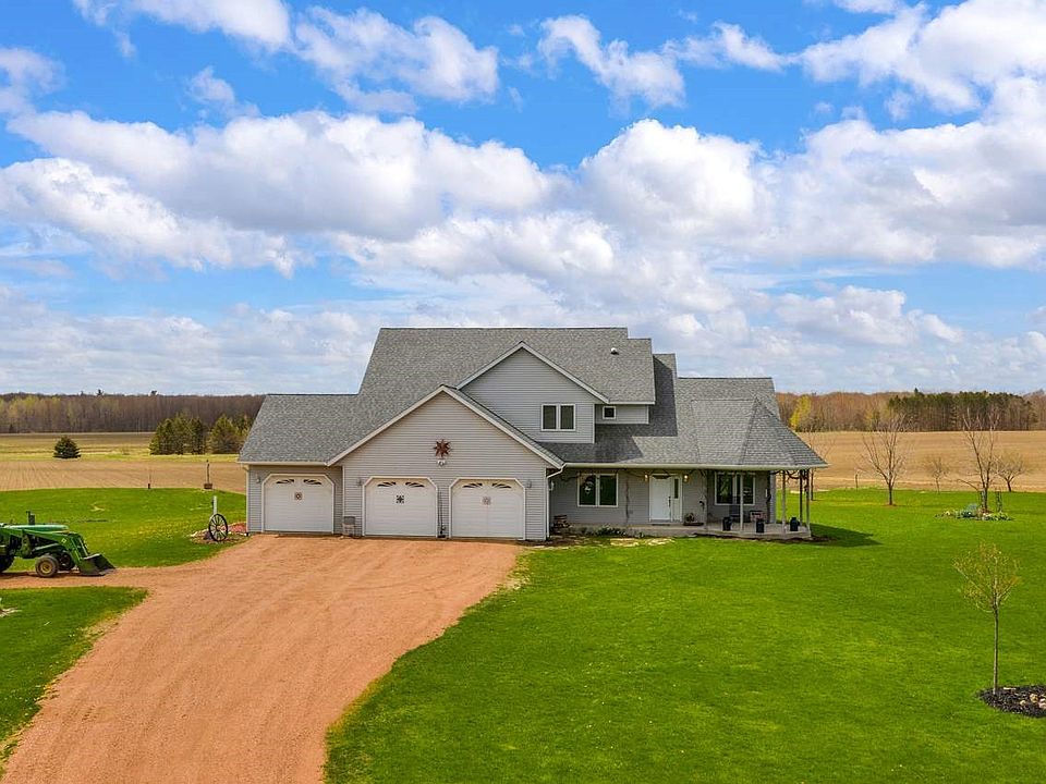 Relisted! New price includes 15+ acres...up from the original 3 acres. Majestically perched at the top of a hill sits this large 5 bedroom, 3.5 bath, 3-car garage home on 15+ acres. Enjoy panoramic views of thebackyard as you sip your morning coffee while sitting at the kitchen table. Kitchen and bathrooms boast custom-made Mennonite cabinetry.Solid oak doors and trim throughout. The kitchen has newer appliances, a walk-in pantry and an island. The living room has a grand feel with itsvaulted ceiling, hardwood floors, gas fireplace and open staircase. Main level master suite and laundry room. Master bedroom has a walk-incloset and a full bath with a jetted tub. The upper level has 4 large bedrooms and a full bath with a double sink on one wall plus a makeup vanityon the other. The style in the basement is off to a great start. Really great custom-made rustic wooden doors have been installed on most of therooms. It has a partially exposed walkout plus a separate entrance from the garage. The basement has a full bathroom, a sewing/hobby roomand a root cellar. Portions of the basement have in-floor heat. The unfinished spaces are just waiting for your final design finishes. Large 3-car garage is insulated and has in-floor heat. Forced airgas furnace plus an outdoor wood-burning furnace. Multi-zoned heating. Outside enjoy privacy, wildlife, a huge front porch, raisedgarden beds, fruit trees, a fire pit and amazing views in every direction. Located on a dead-end road. Centrally located betweenWausau and Marshfield (approximately 20 miles in either direction) and only minutes away from Mosinee and Marathon City.Dreaming of living in "the large house on the hill"? Come check out this great home today. Septic might be sized for a 4-bedroomhome. The tillable field is leased to a local farmer on a verbal 1-year lease.