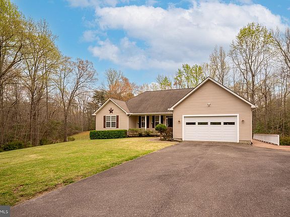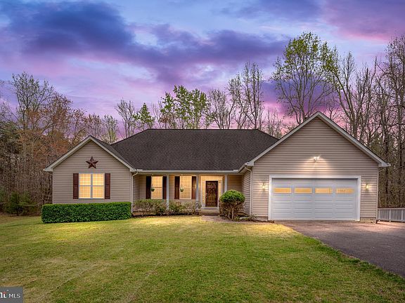 This is the beautiful private oasis you have been looking for. Enjoy deer and wildlife with your morning coffee from your deck in this secluded nature lovers dream. *** Welcome guests on your covered front porch as they enter the foyer with beautiful hardwood floors. Walk on through to the deck with new decking and handrails. This home is ready to welcome you with 4 bedrooms, Primary bedroom with beautiful trey ceiling, 3 full tiled baths, Dining area that opens to the deck where you can enjoy cook outs and watching the kids play in the backyard. *** Enjoy cooking in your gourmet kitchen - stunning Cherry cabinets, double wall ovens, granite countertops, stainless steel appliances, lots of storage and work space will make cooking those family meals and entertaining a breeze *** The fully finished basement offers a complete living area with large bedroom to code, with septic and 2 walk in closets, very large open space for living, dining and recreation, with plenty of room for a pool table. A kitchenette with dishwasher, microwave and counter space, Plenty of room for a stove and refrigerator with an ice maker hook up available - also a lovely full bath and an extra room for an office or what ever your life style calls for. Walk out to your patio looking out into the acres of wooded nature. This would be the perfect Mother-in-law suite or a grand additional living and game space for entertaining. *** 10 minutes to Dahlgren and the 301 bridge to MD., 30 minutes to Fredericksburg with shopping and entertainment and an hour to Richmond or DC. *** A 2-10 home warranty is is provided for your peace of mind.