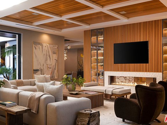 Two-sided fireplaceDedicated pickleball courtRelaxation loggiaSurrounded by natural greeneryTriple waterfall islandBookmatched stone slabsOrganic gardens