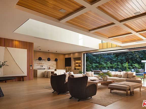 Indulge in an effortless resort-quality lifestyle from this extremely private entertainer's compound surrounded by natural greenery with sumptuous canyon views, showcasing a variety of premier amenities on 1.3 acres of mostly flat usable land. An absolute dream for recreational enthusiasts, growing families, and sports professionals alike, this exquisite haven includes a dedicated pickleball court, a professional-size basketball/sports court, and putting green, all enveloped by a flourishing leafy paradise. An expansive gated motor court provides parking for ten cars, and a striking entry calms the senses with soft organic tones complementing the lush hillside beyond. A gourmet chef's kitchen is outfitted with bookmatched stone slabs, triple waterfall island, and Miele appliances as well as a commercial-grade walk-in refrigerator in the caterer's prep galley. Both bar and wine room are showpiece standouts, and the theatre is expertly configured to match a true cinema experience. Upstairs, the primary wing alone spans 3,000 square feet and offers a lounge, two-sided fireplace, and a marvelous spa-worthy imported European stone-clad bathroom plus dual closet changing rooms, one of which features a walk-out balcony with fire pit overlooking the grounds below. Other amenities include an office, gym, sauna, and mud room. Enjoy a casual, fun-filled lifestyle at this private, family-friendly luxury resort that features a cabana with outdoor kitchen and rainfall curtain, relaxation loggia, a 16-person sunken fire pit with glass view to pool, numerous sitting areas, organic gardens, and 3,000-square-foot rooftop deck optimized for entertaining under California skies. Secluded in a park-like setting with no immediate neighbors, this ideal estate promises joyful existence and enduring, uninterrupted leisure from one of the most highly sought-after locales in the world. Welcome to the peak of contemporary luxury.