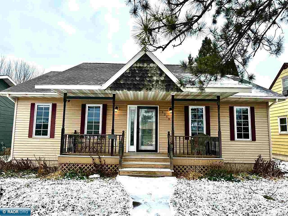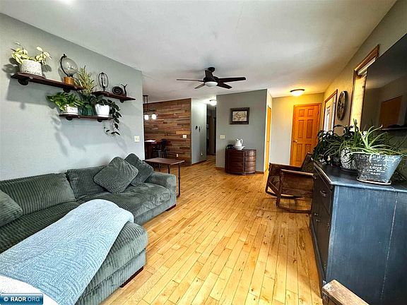 Welcome to this charming one-level home offering 3 bedrooms, 2 bathrooms, and 1,378 sq ft of move-in ready living space. Enjoy hardwood floors throughout, a spacious living and dining area with a custom wood-accent wall, and a 2021-updated kitchen featuring soapstone countertops, stainless steel appliances, marble backsplash, and a farmhouse sink. The primary bedroom includes a private en suite. Major updates include new windows, doors, and furnace in 2018. Step outside to a fenced-in yard, spacious back deck, and a cozy covered front porch. An insulated 2-stall garage & additional paved back parking adds convenience. Mall, restaurants, etc. just a walk away!