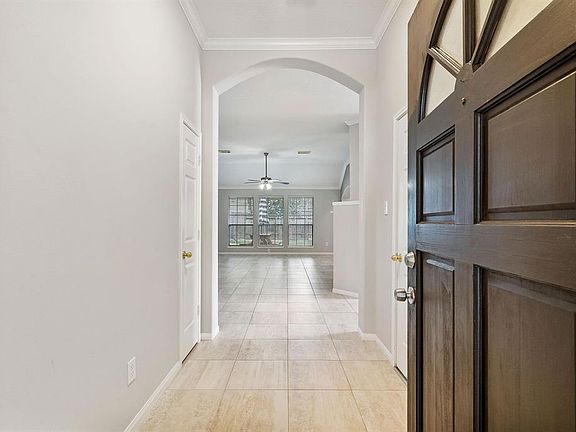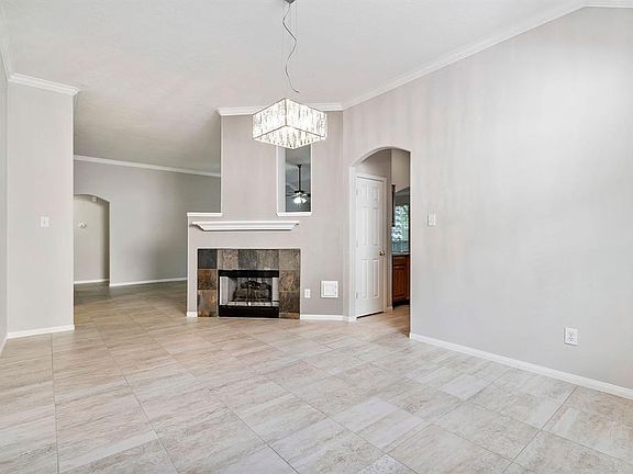 Beautiful one story home in move-in condition! Open concept with a spacious living area featuring 10 ft. ceilings. Inviting Formal dining. Dual sided fireplace warms the living room and the formal dining. Kitchen features gas stove, refrigerator, lots of cabinets and counter space. Tile floors throughout except the 3 bedrooms which have wood look vinyl. The large Primary suite offers a private bath with separate tub and shower, double sinks and a large walk-in closet. The 2 secondary bedrooms also have wood look vinyl. Neutral decor. Community pool, park and playground area are located nearby. Convenient to Hardy Toll Rd, 99, ExxonMobil, HP, The Woodlands, Texas Childrens Hospital and several other hospitals. Conroe ISD