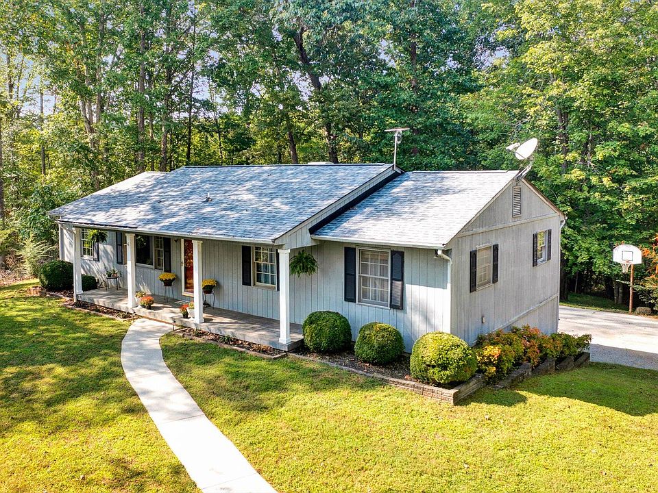 Welcome to 1319 Chandler Rd! Interior of Home just Professionally Painted, Cleaned & Ready to Move In! Large front porch, Open floor plan: living room to the dining room & kitchen. Office/library w/built-in bookcases. Lovely Sunroom, Large Deck. Primary Bedroom Suite, 2 more bedrooms & hall full bath all on entry level. Downstairs Den w/doors to patio, Storage Room, Laundry Room, Large Two Car Garage. Outside you will also enjoy the ''park like sitting area.'' Storage building for garden tools & more. Back yard borders wooded area. All of this on 1.6 acres! New 30 Year Roof-2021; New HVAC-2016. Close to Smith Mountain Lake & Moormans Marina! A great place to enjoy the Lake without the high cost of a Waterfront property. Don't Wait and miss your opportuntiy!
