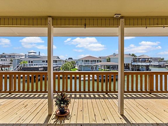 Welcome to your coastal retreat on the highly sought-after Tiki Island! This waterfront home blends island charm with modern comfort, designed for relaxation and entertaining. Step inside to an open living area filled with natural light and water views from nearly every room. The kitchen offers ample counter space and flows seamlessly to the dining and living areas perfect for gatherings. Enjoy your morning coffee, sunset skies, or peaceful star-gazing and moonlit nights from the covered balcony with no lighting interference. The secondary bedroom is generously sized, ideal for guests. A private boathouse with lift makes it easy to explore Galveston Bay, while the shaded area below is perfect for outdoor dining and lounging. Just minutes from Galveston’s beaches, shopping, and dining, yet nestled in the peaceful Tiki Island walking community- this home is your slice of paradise!