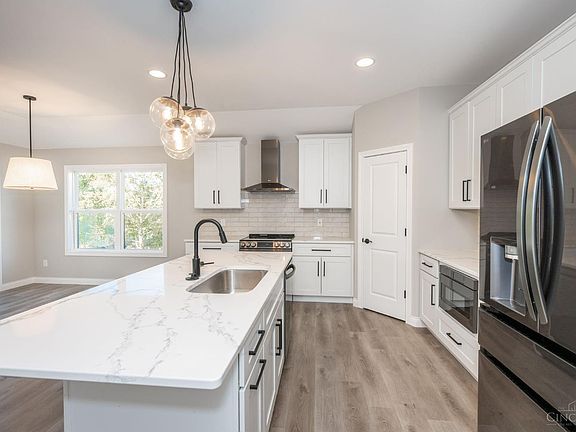 Gorgeous new construction home in Falcon Meadows! Ultra convenient single story house appointed with luxury finishes. Bright and airy open floor plan with 9 foot ceilings throughout, luxury vinyl plank floors and gas fireplace. First floor also features a spacious laundry room equipped with utility sink and an oversized two car garage. Gourmet eat-in kitchen with island, quartz counters, 42 inch wood cabinets, range hood and pantry. Enjoy the outdoors on your large covered deck directly off of your main living space. Wonderful primary bedroom w/ a luxurious en-suite full bathroom and a massive walk-in closet! The lower level offers additional finished living space with a huge unfinished storage area. Full walkout basement allows you to step right out to a back patio and your backyard. Just minutes away from the booming downtown Hamilton business district!