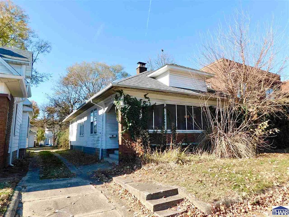 Discover the potential in this charming 2-bedroom bungalow located just minutes from ISU and Downtown Terre Haute. With a roof that's only 4 years old, this home is ideal for an investor or DIY buyer looking for a great winter project. A welcoming covered front porch sets the tone, leading into a spacious living room, formal dining area, and hardwood floors throughout. The large basement offers plenty of storage space and room for a comfortable laundry area. Outside, you’ll appreciate the convenience of off-street parking. Area rental data suggests that similar 2-bedroom homes may rent for around $1,100 per month once home has been renovated; buyers should verify all income projections. Bring your vision and schedule your showing today!