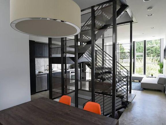 Modern home. Concrete/hardwood floors and stairs. Mini Split Heating and Cooling system. Radiant heated floors. 2 rooftop decks. Partially furnished.