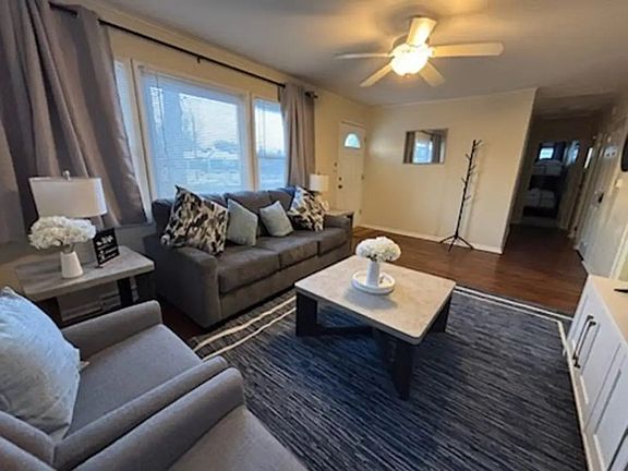 Home Features 3 Bedrooms 1 bath. Completely Furnished with a Fenced back yard and a 2-Car Detached Garage. Comfortably sleeps 9. Pets allowed for an additional $10 per day, per pet.