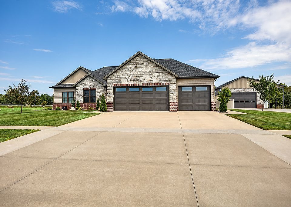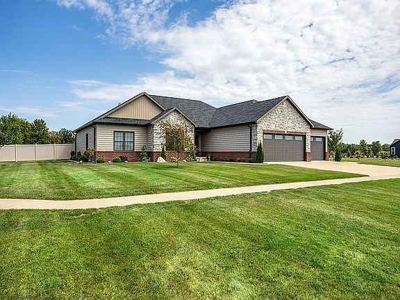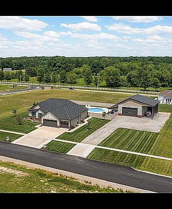 This house has it all. It’s set on a 3/4 acre lot in the new Effingham Country Club Subdivision. Home was built in 2019 with the party shed and pool being added later. The house is 2257 sq ft upstairs with another 1543 sq ft finished downstairs. Upstairs features 3 bedrooms and 2.5 baths, customs kitchen cabinets, crown molding, granite and true hard wood throughout the upstairs. It features a walk-in pantry, stone fireplace, office/dining room, large tile shower with built in seat, soaker tub and much more. Downstairs has the 4th bedroom/workout room with another full bath and custom made bar. The 30x40 heated party shed includes 2 15ft lean-to’s, full kitchen and bath, and a 2nd story loft. The 27ft heated inground pool with the fenced in backyard sets the perfect entertaining backyard. Special features of the home, whole house generator, irrigation on the entire property, ADT security with multiple cameras, sodded yard, water softener and much more. Having 2 full kitchens, 5 bathrooms, 4 bedrooms, 2 bars, 2 heated garages, large parking lot, so much storage, large enclosed entertaining area, this house has it all.