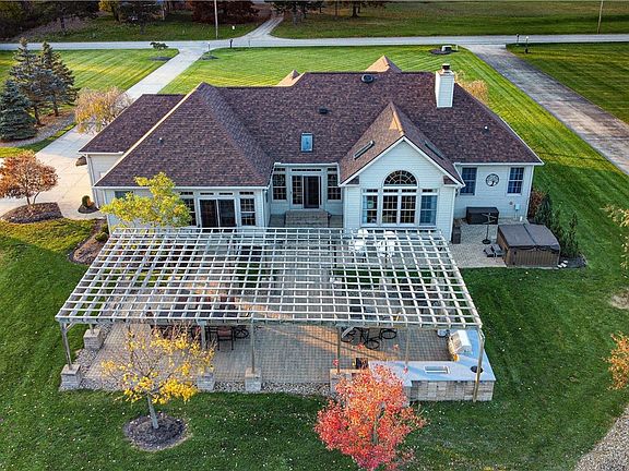Nestled on an expansive lot of almost an acre and a half right across from the metroparks, this large ranch home is a captivating masterpiece of comfort and luxury. The grandeur of the property is evident, with a striking 2-story entryway welcoming you into a world of elegance and charm. The main living area is bathed in natural light, thanks to its vaulted ceilings, creating an open and inviting atmosphere. The large primary suite offers a tranquil retreat, providing ample space and an en-suite bathroom. A seamlessly elegant open floorplan leads to an expansive chef's kitchen with granite countertops, stainless steel appliances, and floor-to-ceiling cabinets. The first-floor laundry adds convenience, while the formal dining room sets the stage for shared moments. Two additional bedrooms offer privacy away from the main living area. Descend to the fully finished basement, where you'll find a full bar, a large recreation room, an office, a craft area to let your creativity flourish, and an extra room that adapts to your needs. Step outside to discover a stunning outdoor oasis. The pergola-covered giant patio beckons you with its built-in kitchen, making it an ideal space for hosting gatherings and creating culinary delights in the open air. As if that weren't enough, another spacious patio with a hot tub invites you to unwind in style. Additional features include a storage shed for all your outdoor equipment, keeping your property organized and tidy and geothermal heating.