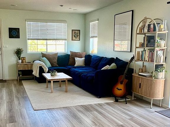 The house gets tons of natural light throughout the day. The downstairs has the kitchen, open living room, and a sliding door that opens up to a deck we had built with open views of the mountains to the west. The upstairs has two bedrooms. One is a master with a king size bed and bathroom with a shower. The other has a queen size bed and is right next to the other bathroom which has a shower/bathtub. The washer and dryer are also located upstairs.
