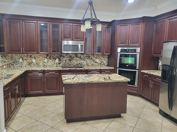 Luxurious multi-generational 6 bedroom / 4 Bathroom / 3-Car Garage in 5180 Sq Ft Total with 4000 Living Sq ft one story on 18000 Sq Ft corner Cul d Sac street private lot with privacy hedge. One story multi-split floor plan in six (6) Bedrooms & four (4) full Baths all have walk-in custom-built wardrobe closet systems. Cooling with three separate central A.C.s & three private split bedroom areas, the entire single-story home is 18" diamond pattern Ceramic tile with high ceilings. The huge master suite is 1100+ square ft, his & her custom built walk-in closets, Jacuzzi tub & his and hers separate double wood vanities with sinks in Italian granite. Whole interior all walls fresh new paint, all interior doors new paint, all baseboards new paint. Exterior pressure cleaned and whole house fresh paint including pressure cleaned driveway and back patio. Living spaces finished with large crown moldings, oversized doors, high ceilings and baseboards. Gourmet kitchen is fully equipped with Stainless Steel appliances including double built-in ovens, Ceramic cooktop, Micro-hood extractor, Dishwasher, sink food processor, deep sink, with wood cabinetry, Italian granite counters + island. Crown molding finishes, high ceilings, oversized doors, custom lighting, surround sound speakers through entire home & back patio. Impact security hurricane windows & doors including (3-car) three-car garage, oversized brick paver driveway & two separate fenced Boat / RV pads. Privacy hedge surrounds whole property includes security alarm system & DVR camera system. An oversized brick paver driveway and two separate boat/ RV pads. Cul D Sac street private and quiet. Serious Inquiries & Realtors **FYI Zillow places a number Not mine **CALL direct Call * (Se7en 86) Six 83-Six 222