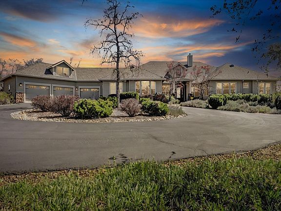 This custom estate offers commanding 360-degree views of the Sierra Nevada Mountains, the majestic Sierra & Sutter Buttes! Designed for refined living, the residence features four elegant en-suites, a sophisticated office and extra half bath. Exceptional craftsmanship is showcased throughout with travertine, marble, granite, and sculpted hickory floors and motorized shades to keep the heat out. The gourmet kitchen is a chef's dream, anchored by a Bertazzoni Italia six-burner gas range and double ovens, maple cabinetry, stainless steel appliances, and a walk-in pantry with 2 wine refrigerators. Enjoy the ambiance of three gas fireplaces, a whole-home surround sound system, smart technology including security cameras. The luxurious primary suite boasts awe-inspiring views, two walk-in closets, and a spa-like bath with jetted tub. An oversized three-car garage with 1,270 sq fT over garage could be man cave or ADU. For the hobbyist or collector there is a 2400 sq ft shop with concrete flooring, RV pull-through with power and water.This energy efficient home offers owned solar, backup generator APRILAIR for pure air throughout the home. Beautiful gated entrance with decorative pole lighting This is luxury with privacy, comfort and breathtaking beauty