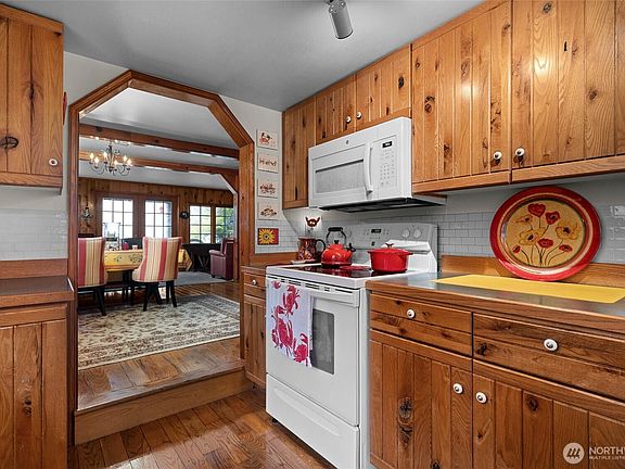 Timeless coastal charm on Similk Beach. This rare low-bank waterfront cottage captures the essence of a 1920 seaside bungalow, lovingly restored to honor its history while elevating it for modern living. Every detail reflects thoughtful craftsmanship—from custom-milled knotty pine walls to the Rumford fireplace, built of Frazier River Rock & adorned w/ shells & fossils gathered from the shore. Offered fully furnished, this home invites you to step into a relaxed coastal lifestyle from the moment you arrive. A separate studio cottage provides a serene retreat for guests or options for a vacation rental. RV/Boat parking + 2 sheds w/ power. Moor your boat on a nearby buoy & let your waterfront adventure begin right outside your doorstep!