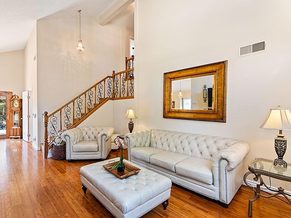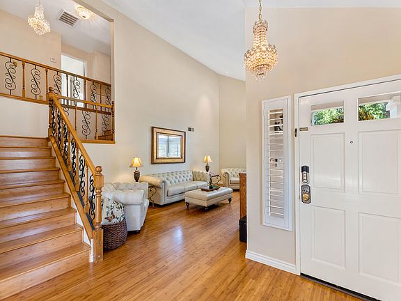 Welcome to this 4 bedroom, 3 bathroom, remodeled home in Moorpark! This property features upgrades throughout and a show-stopping backyard!! The light and bright living room is complete with vaulted ceilings, hardwood flooring, and breathtaking views of the backyard. The kitchen features newly refinished cabinetry, granite countertops, and recessed lighting. Down the hall you'll find a first floor bedroom, indoor laundry, and remodeled full bath with marble tile flooring and upgraded vanity and fixtures. The garage has been converted into 2 additional rooms intended for music/studio purposes, equipped with soundproofing walls and AC units. Upstairs there are 2 additional bedrooms, a remodeled Jack & Jill bathroom, and the Master Suite. The spacious Master suite features hardwood floors, a walk-in closet & a remodeled master bathroom complete with marble tile, newer double vanity with quartz countertops, and a soaking tub and separate shower. The spacious and BEAUTIFUL backyard is perfect for entertaining!! It has an outstanding pool, raised spa, and waterfall. Just under a quarter acre, the yard features lush landscaping, a built in outdoor BBQ, bar area, fridge, and much more. It also has a huge side yard with potential for RV parking! Directly across from the community park & pool with a low HOA! Close to award winning schools, shops & restaurants! Welcome Home!