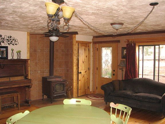 Beautiful, well-maintained true adobe home, recently remodeled and updated. Low maintenance and highly energy efficient. Copper and decorative wood throughout. Easy year-round access and a fully fenced yard. Large open deck for entertaining with panoramic views. Home is protected from the wind and receives full sun from sunrise to sunset. Peaceful setting with lots of useable elbow room. Large barn with sleeping quarters and workshop/garage attached. Horse stalls open out to pasture. SqFt includes 500sqft of heated guest quarters.