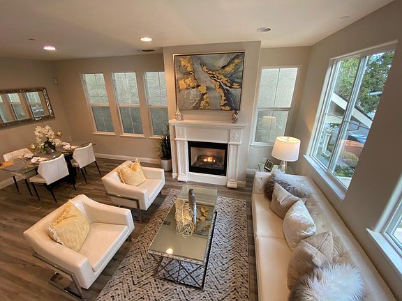 Stunning tri level single-family home located within walking distance to popular Castro Street and all that Mountain View has to offer! Built in 2008, this immaculate designer home features high ceilings, picture windows, recessed lighting. Gourmet kitchen with generous counter space, quartz counters, stainless steel appliances and kitchen island with breakfast bar. Open floor plan throughout the main living/dining area offers views and a beautiful fireplace. The master bedroom suite on the top floor has double vanity, shower, soaking tub and ample closet with Elfa shelving. The second bedroom on the top floor also has an en suite bathroom with shower over tub. First floor has access to the two car garage, dedicated laundry area with abundant storage and bedroom with en suite bathroom and ample closet space. Attached garage with custom built in storage. Steps away from restaurants, Caltrain, light rail and the Farmer's Market