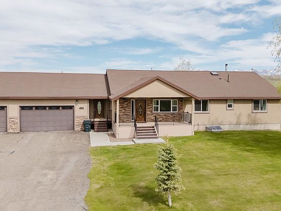 Welcome to 132 Bartlett Drive this stunning custom-built home with breathtaking mountain views and no HOA! Featuring 3 spacious bedrooms and 3 full bathrooms upstairs, including two main suites, plus an additional finished room and bathroom in the basement, this home offers comfort, flexibility, and thoughtful design throughout, Enjoy premium finishes like natural hardwood floors, granite countertops, soft-close cabinetry, and stainless steel appliances, this home is all-electric for efficiency. Step outside onto the low-maintenance Trex decking, ideal for relaxing or entertaining with a view, the backyard is fully landscaped & fenced with automatic sprinkler system and apricot trees on a drip system, you can relax in your own private wood buring sauna. The home features a 2,400 sq ft shop with a 12' x 12' door, two 10' x 8' doors, and a car lift that stays, plenty of room for RV parking and you have your own private well. This is a must-see home! schedule your showing today
