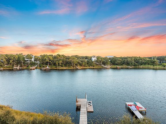 Here is your chance to own one of the rarest properties on 30-A. With sweeping views of Camp Creek Lake and direct views of the Gulf, this fully furnished and masterfully designed, custom-built retreat offers the rare combination of no HOA, direct water access, and short-term rental flexibility -- all within moments of the Watersound Beach Club and the best that 30-A has to offer.Built in 2019, with elevator access to every floor, this waterfront residence features three bedrooms plus a bunk room, and provides the flexibility to expand to five total bedrooms. From your private dock, enjoy fishing, boating, or--if you're a Beach Club member--direct kayak or boat access to the Watersound Beach Club's private beach and community dock. Wake up to sunrises over the coastal dune lake, a rare phenomenon only present in a handful of locations worldwide and end your days with sunsets over the Gulf. Each level captures a unique perspective of the surrounding water and dunes, offering some of the most breathtaking coastal views on 30-A.